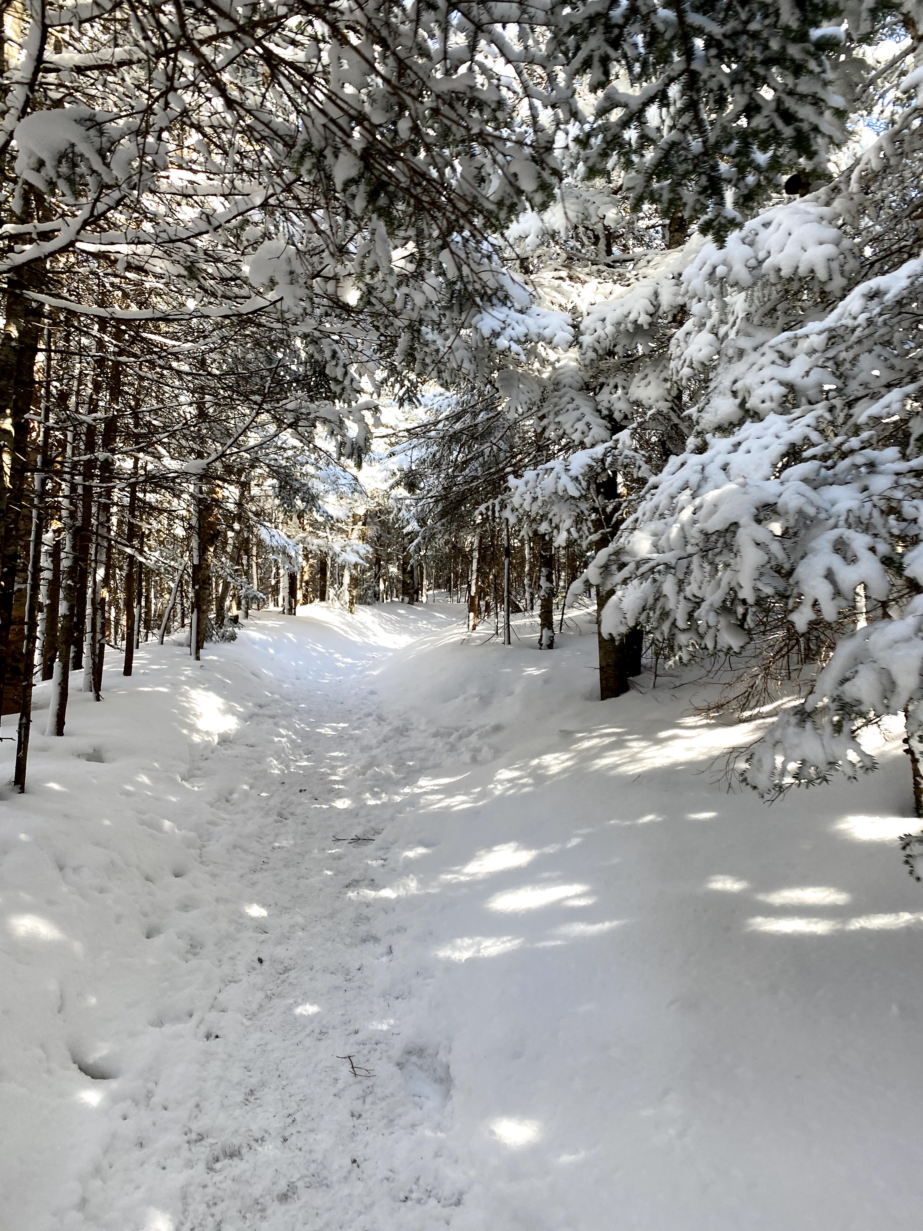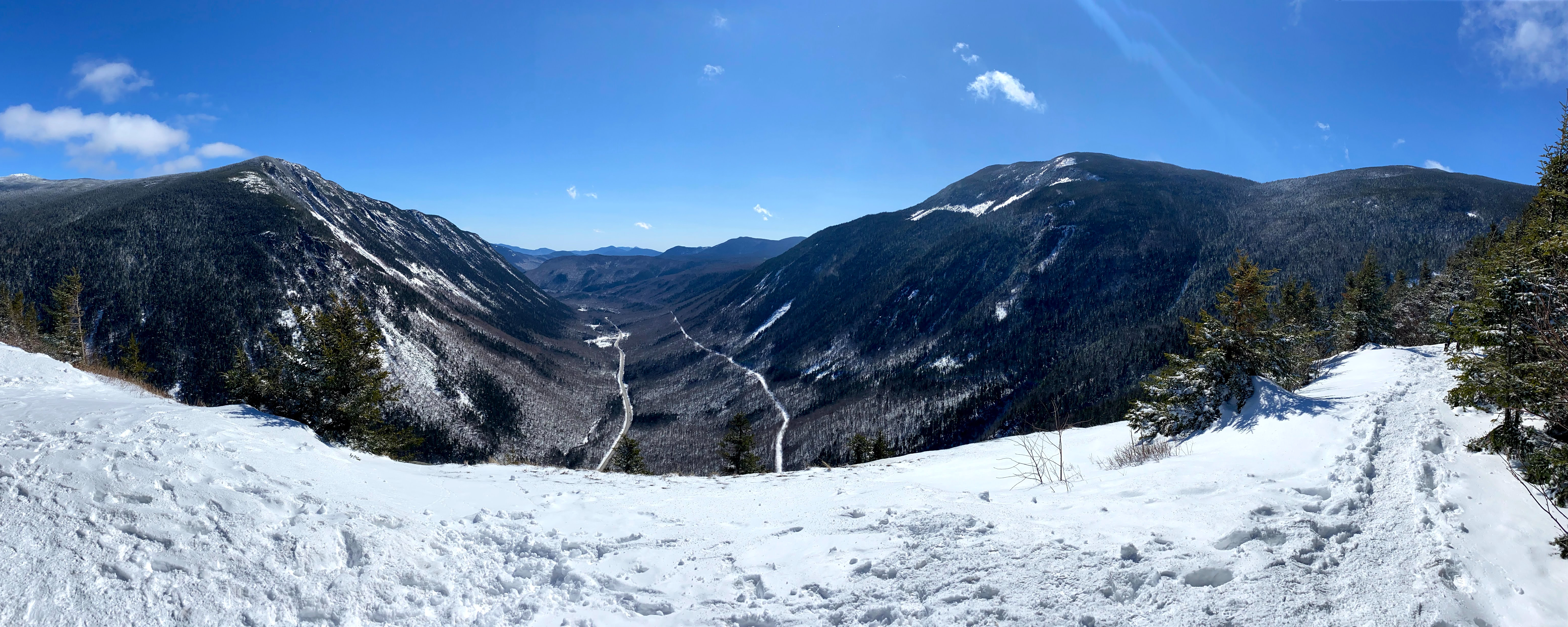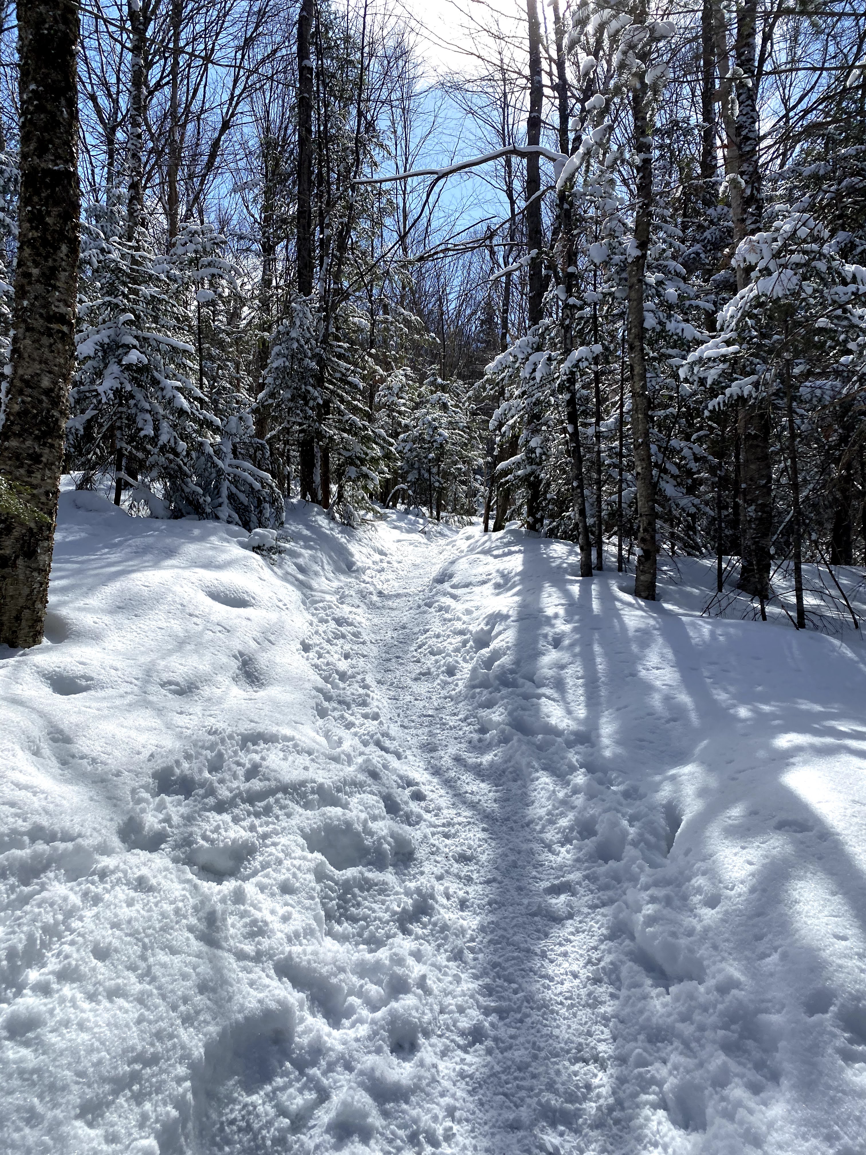 I hope you brought snowshoes for this one because I didn’t! This trail was mostly packed down snow but take one step off the trail and you are falling knee-deep in powder. It was a little bit icy at points with an amazing payoff from a stunning viewpoint. At times, it felt like I was walking through a winter wonderland. My dog, Molly had the time of her life on this one.
